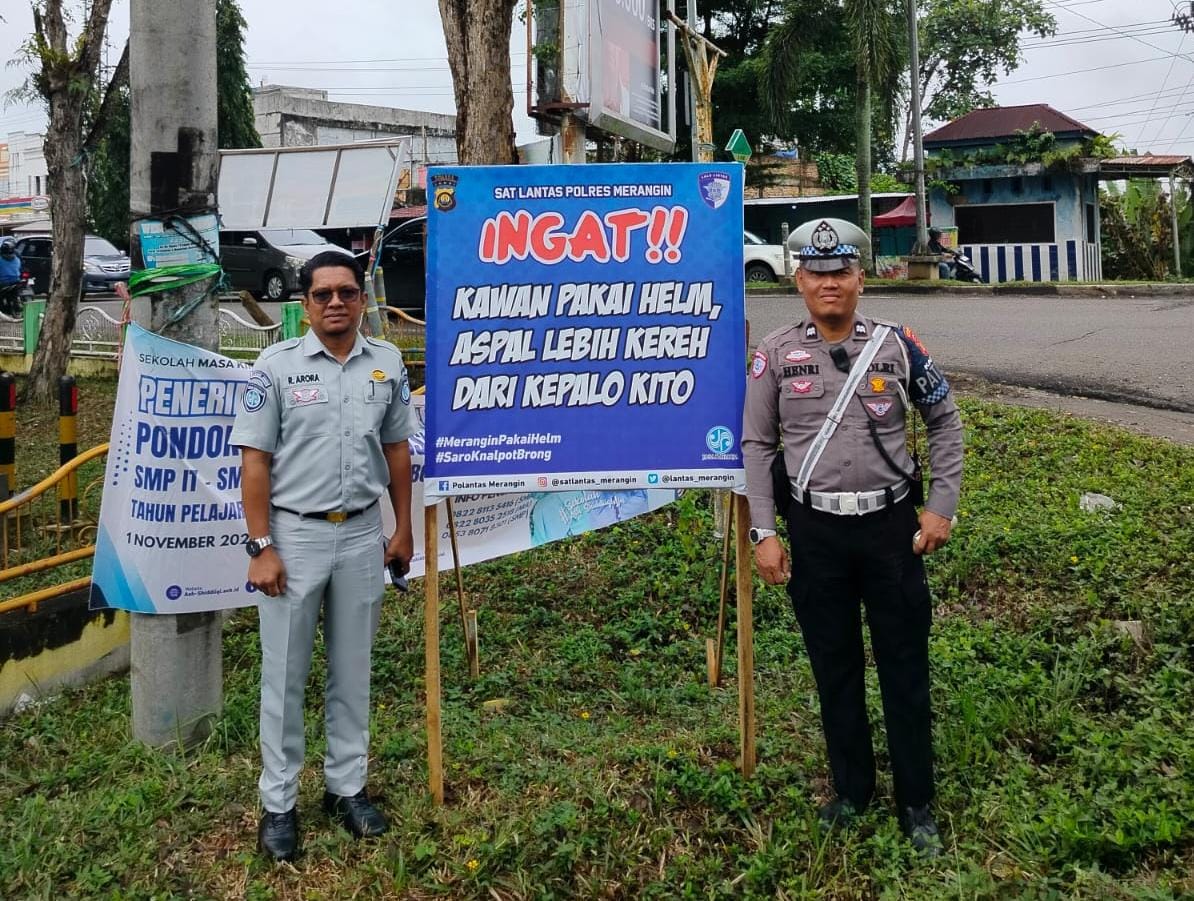 SUARAJAMBI.COM- Dalam upaya meningkatkan kesadaran masyarakat terhadap pentingnya keselamatan berlalu lintas, telah dilakukan pemasangan spanduk himbauan di berbagai titik strategis di Kecamatan Bangko, Kabupaten Merangin. Kegiatan dilakukan Rabu, 26 Februari 2025 ini bertujuan untuk mengingatkan pengguna jalan agar selalu mematuhi peraturan lalu lintas demi mencegah kecelakaan dan menciptakan lingkungan berkendara yang lebih aman.